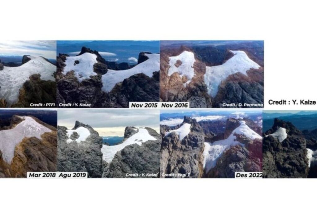 Data dari Badan Meteorologi Klimatologi dan Geofisika (BMKG) mengkonfirmasi kondisi gletser di Papua yang semakin mengkhawatirkan. Pemantauan yang dilakukan pada 11-15 November 2024 menunjukkan penurunan signifikan pada luas dan ketebalan “salju abadi” di Puncak Sudirman.