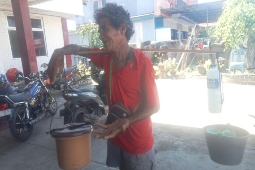 MAUMERE, KOMPAS.com – Di tengah terik matahari yang menyengat Kota Maumere, Nusa Tenggara Timur, pada Rabu (22/4/2026), Marten Lena, seorang pria paruh baya, terlihat memikul dua ember dan beberapa botol nira menggunakan sebilah kayu. Langkahnya yang pelan saat memasuki halaman kantor redaksi Ekora NTT, sebuah media lokal di Maumere, menggambarkan kelelahan yang terpancar dari raut wajahnya. “Harga satu botol Rp 15.000, tadi sudah laku dua botol,” ucap pria asal Sabu Raijua yang akrab disapa Ama Marten itu.